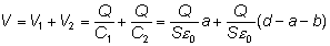 ya que la diferencia de potencial del conjunto de los dos condensadores es: