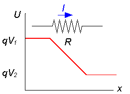 Las cargas eléctricas que atraviesan una resistencia entran con una energía qV1 mayor que con la que salen qV2. La diferencia de energía es: