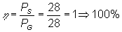 Como es de esperar ambos elementos ideales (generador de 4V y generador incógnita) tienen un rendimiento del 100%.