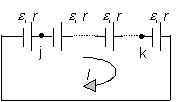 P6. Un conjunto de n generadores idénticos con f.e.m. e y resistencia interna r se asocian en serie cerrando el circuito con un hilo sin resistencia. Calcula: a) Intensidad que recorre el circuito. b) Diferencia de potencial entre dos puntos cualesquiera j-k. |