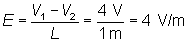 b) El módulo del campo eléctrico en un conductor cilíndrico homogéneo es igual al cociente entre la diferencia de potencial entre sus extremos, V1 - V2, y la longitud del mismo, L: