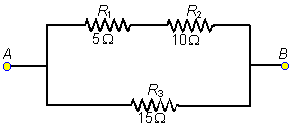 P6. Entre los extremos A y B del circuito de la figura se aplica una diferencia de potencial VAB de 30 V. Indica en qué resistencia se disipa mayor potencia, y en cual menor potencia.