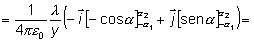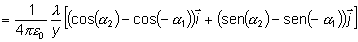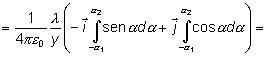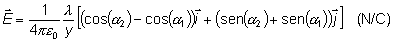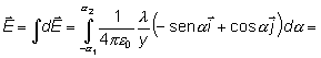 Ahora debemos integrar dicha expresión. En la figura se representa una distribución de longitud L en la cual los límites de integración para la variable a vienen dados por -a1 y a2. De este modo, el campo eléctrico viene dado por: