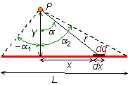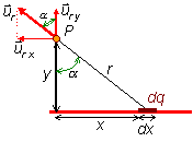 elemental dx sobre la distribución. El campo que crea en el punto P es: