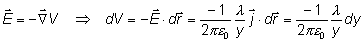 Para el cálculo del potencial podemos partir de la expresión del campo eléctrico, y su relación con el potencial: