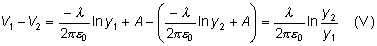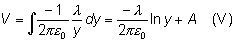 No es posible hacer compatible este resultado con el criterio de potencial nulo a una distancia infinita de la distribución, ya que la constante de integración daría infinito. Pero sí que sería válida para obtener el valor de diferencias de potencial, por ejemplo entre dos puntos situados a distancias y1 e y2 de la distribución: