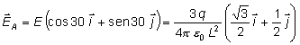 Y el campo eléctrico total es la suma de los campos eléctricos de cada una de las cargas,