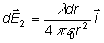 Para la distribución lineal de carga, el campo elemental creado en el punto P por el elemento de carga dq viene dado por,