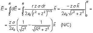 y para obtener el campo total integramos esta expresión para todo el disco, es decir, desde r=0 a r=R,