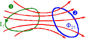 Dados dos circuitos 1 y 2, si el circuito 1 está recorrido por una intensidad I1 y crea un campo magnético B1, el flujo magnético en 2 F21 debido al circuito 1 es proporcional a I1. Al coeficiente de proporcionalidad entre F21 y I1 se le llama coeficiente de inducción mutua entre ambos circuitos.