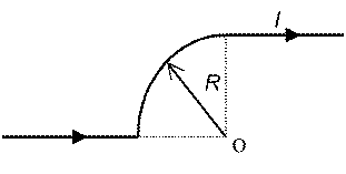 P5. Un conductor de longitud indefinida se curva en la forma de la figura. Sabiendo que por él circula una intensidad I, calcula el campo magnético en el punto O, centro de la parte circular de radio R.