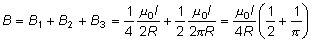Por último el tramo rectilíneo por encima del punto O, crea un campo en dicho punto de valor la mitad del campo que crea un conductor rectilíneo indefinido. Así resulta: