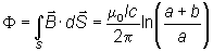 , el flujo a través de la espira viene dado por,
