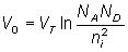 En la unión P-N en equilibrio, es la diferencia de potencial existente en la zona de transición. Depende de la concentración de impurezas aceptoras (NA), donadoras (ND) y de la concentración intrínseca (ni), y viene dada por: