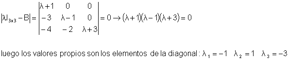 Resumiendo, para el valor propio 3, la matriz únicamente