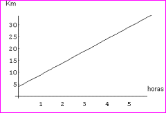 Un ejemplo de función afín viene dado por la ley del movimiento uniforme e = v t+e0 Supongamos un coche que parte del Km 4 de una carretera a una velocidad constante de 5 km/h.