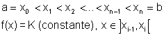 Una función real de una variable real definida en un intervalo [a,b] se dice que es escalonada si existe un conjunto de puntos x0, x1,...,xn del intervalo [a,b], (partición) tales que: