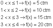 Supongamos que el coste de una llamada telefónica es de 5 céntimos de euro cada minuto o fracción de minuto, es decir: