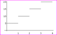 conjunto de los números reales positivos. El conjunto imagen es {0, 5, 10,