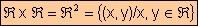 PRODUCTO CARTESIANO R ´ R El producto R ´ R = R2 es el conjunto de todos los pares ordenados de números reales que se pueden formar; se expresa de la siguiente forma: