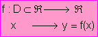 Cuando X e Y son subconjuntos de R , se dice que f es una función real de variable real, así pues: llamaremos función real de variable real a toda aplicación f definida en un subconjunto D de los números reales no vacío (se escribe D Í R ) y que toma valores en R . Se suele escribir