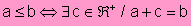 “a es menor o igual que b si y sólo si existe un número real positivo o nulo tal que a más c es igual a b”. |