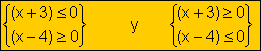 Lo cual nos lleva a resolver dos sistemas de inecuaciones
