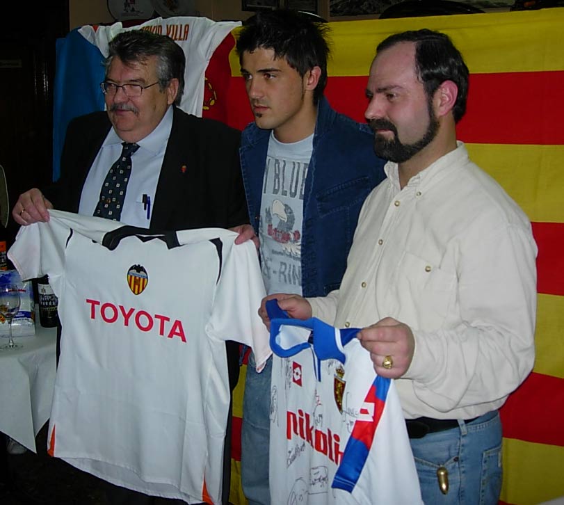 (HERMANAMIENTO CON LA PEÑA MÁSTER Y 4-2 EN LA ROMAREDA). Como estaba previsto, se realizó el acto de hermanamiento con la Peña Valencianista Máster. La principal atracción del acto fue la presencia del ex-zaragocista Villa, en la actualidad, delantero del Valencia y que está en uno de los momentos de forma más destacados de su carrera. El jugador se mostró muy amable con todos los que le solicitaron fotos o autógrafos y agradeció sinceramente el homenaje del que era objeto por los peñistas de sus dos equipos. (Más fotos en las secciones "Historia de la Peña" y "Hermanamientos y amistades".