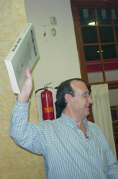 Jose María muestra ufano uno de los regalos que le hicieron: "Miscelánea Turolense" |