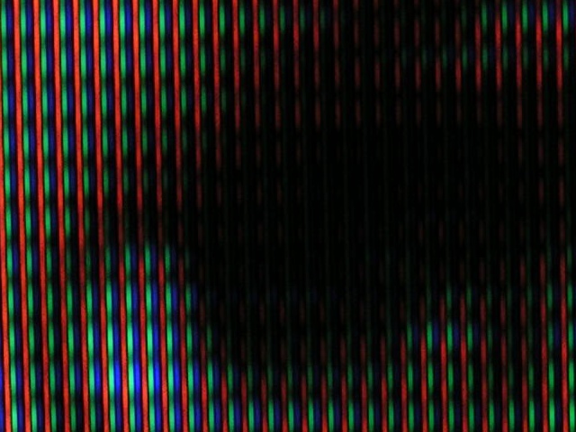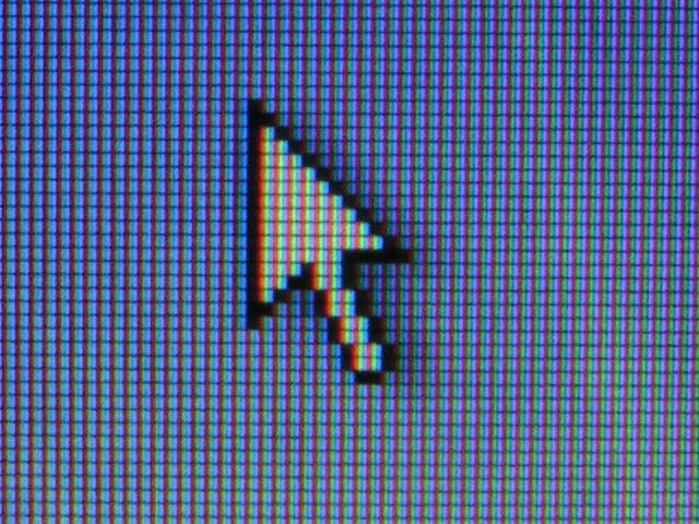 Tomamos una cámara fotográfica, la ponemos en modo macro para acercarnos a unos cuatro centímetros de una pantalla de televisor (de las de tubo de rayos catódicos o CRT) y obtenemos esta fotografía: