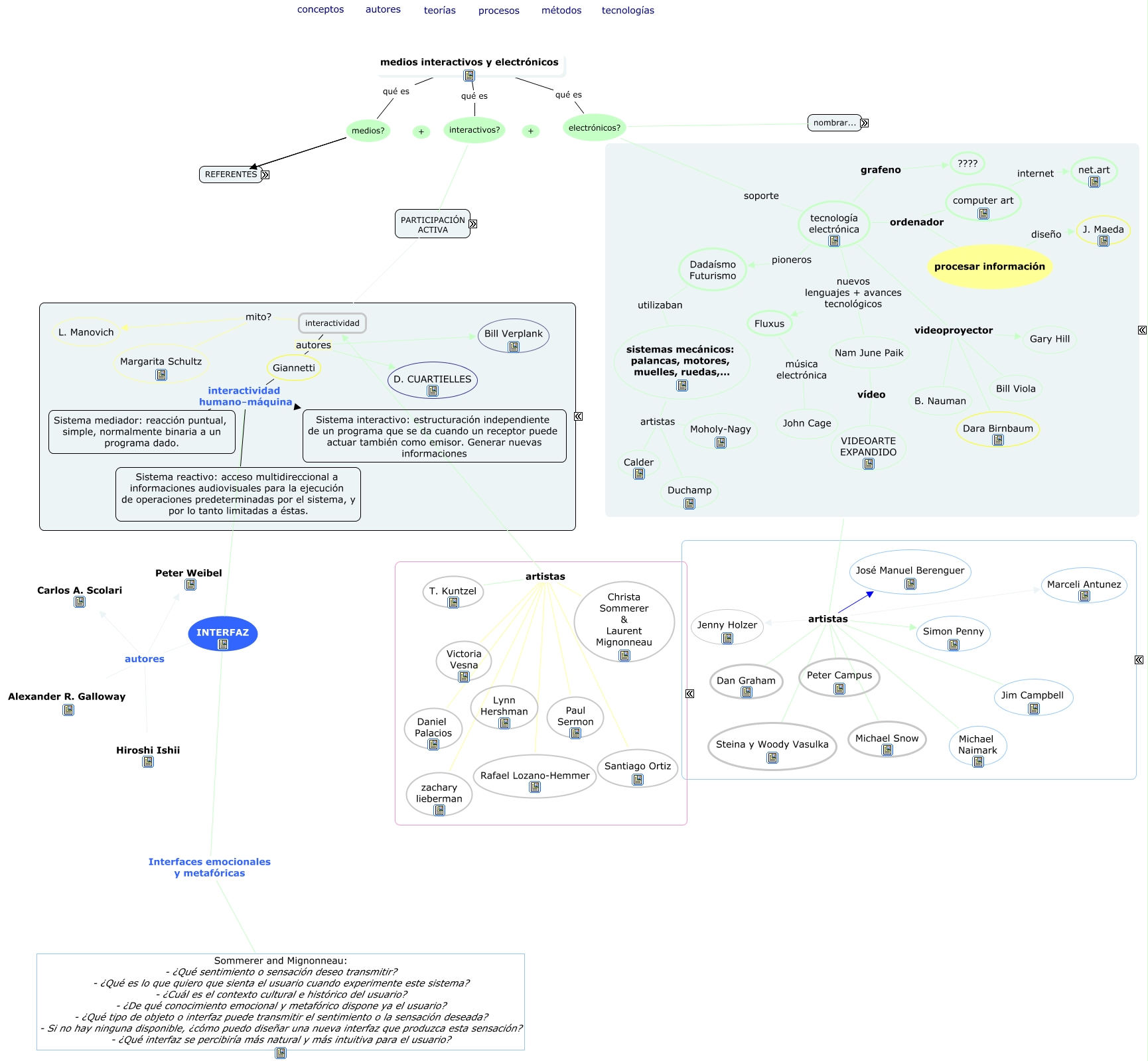 Este Cmap, tiene información relacionada con: 1_conceptos inciales, tecnología electrónica grafeno ????, SOPORTE artistas Dan Graham, INTERFAZ autores Alexander R. Galloway, interactividad autores Bill Verplank, Margarita Schultz mito? L. Manovich, instalaciones interactivas formadas por audiovisuales, SOPORTE artistas Marceli Antunez, electrónicos? modos de prácticas Interactive environment, electrónicos? modos de prácticas Locative Media Art, interactividad mito? L. Manovich, electrónicos? modos de prácticas Video Game Art, electrónicos? modos de prácticas Realidad Virtual, electrónicos? modos de prácticas Transgenic-art, nuevos medios autores L. MANOVICH, computer art internet net.art, INTERFAZ autores Hiroshi Ishii, Michael Naimark artistas José Manuel Berenguer, instalaciones interactivas formadas por sensores, Daniel Palacios artistas interactividad, Nam June Paik vídeo VIDEOARTE EXPANDIDO
