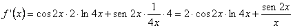 Tal vez alguien, fijándose en el logaritmo neperiano que aquí aparece, podría hacernos notar que hubiéramos podido aplicar, antes de derivar, la propiedad del logaritmo de un producto, con lo que la función hubiera quedado de entrada como