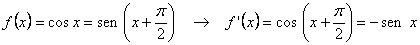 ¤ “La derivada de la función coseno es la función seno cambiada de signo” O, con expresión menos rigurosa pero más breve: