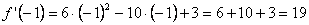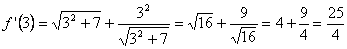 Es conveniente advertir que, como en estos casos la función derivada sólo se necesita para hallar el valor de la derivada en el punto pedido, no será necesario hacer operaciones en ella para dejarla más simplificada, ya que enseguida se va a sustituir la x por el valor dado. En este ejemplo, pues,