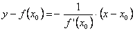 Como la recta normal a una curva en un punto es la perpendicular a la tangente en ese punto, su pendiente será la opuesta de la inversa de la pendiente de la tangente, y, por tanto,