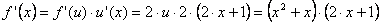 se trata del cuadrado de un polinomio. Por tanto, al derivar tendremos: