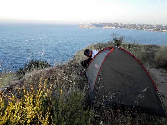 Aquí vemos al amigo Antonio no solo dominando el noble arte de montar una tienda si no también a los elementos, el viento concretamente, que dificultaba el manejo de cualquier material ligero de peso.