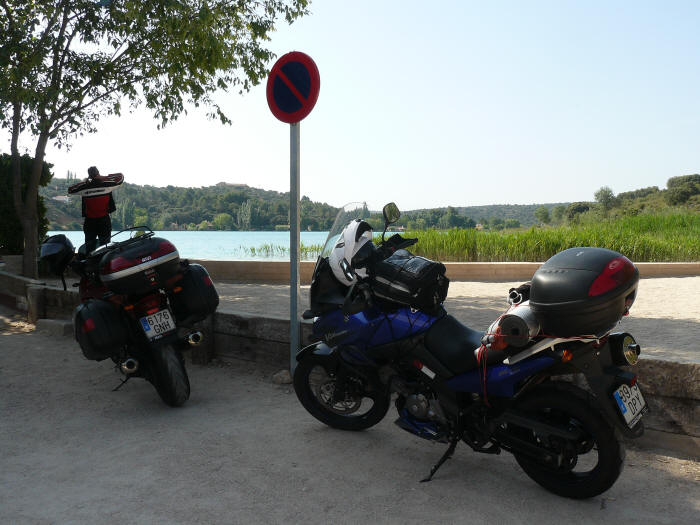 Mucha moto, muchos kilómetros que recorrer y el tiempo, aunque suficiente no se debía de perder, eso influyó lógicamente en las fotografías, pocas, muy pocas..., está de las Lagunas de Ruidera una de las pocas paradas para estirar las piernas sin que fuera una gasolinera...