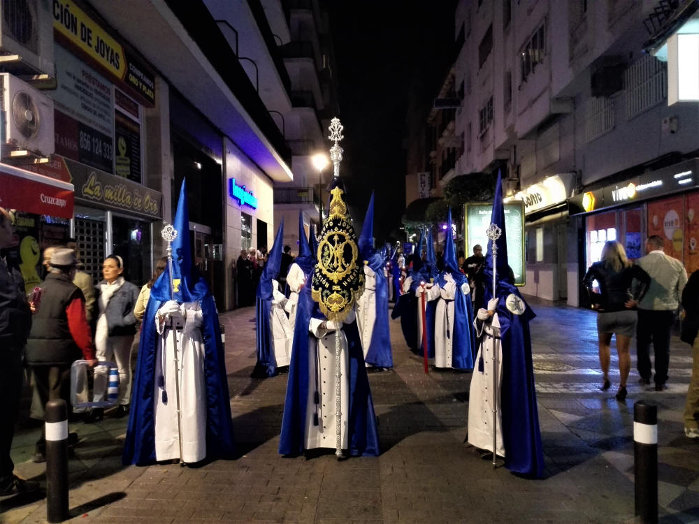 Si por el día tocaba paseo por el "paseo" marítimo y ver el monumento a Paco de Lucia (soy ferviente admirador), por la noche, en Andalucía y en Algeciras en concreto había Semana Santa...
