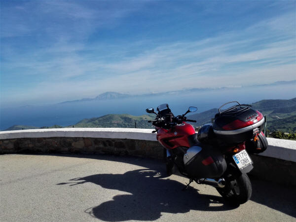 Pasando ya por Tarifa de vuelta, paramos en el mirador del mismo nombre..., al fondo se podian ver las montañas de la costa marroquí...