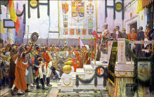 El 29 de agosto de 1812 fue promulgada en esta plaza la primera Constitución española, en medio de la alegría popular, repiques de campanas y salvas de fusilería.