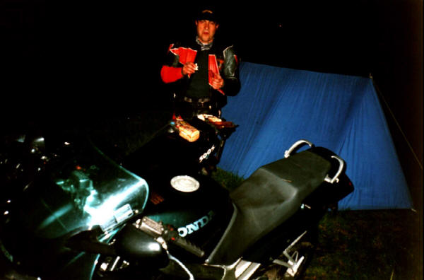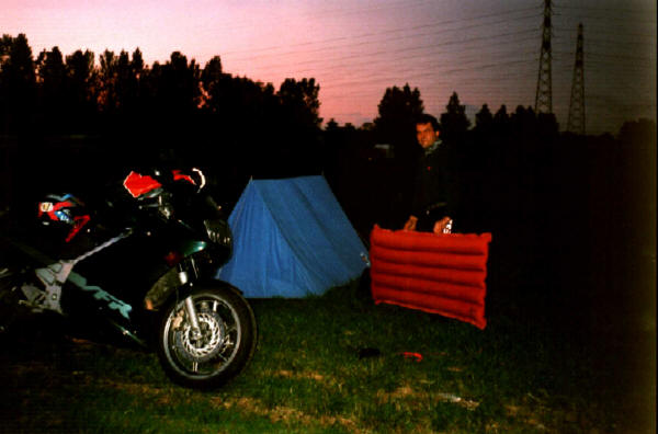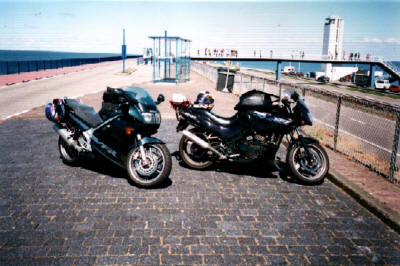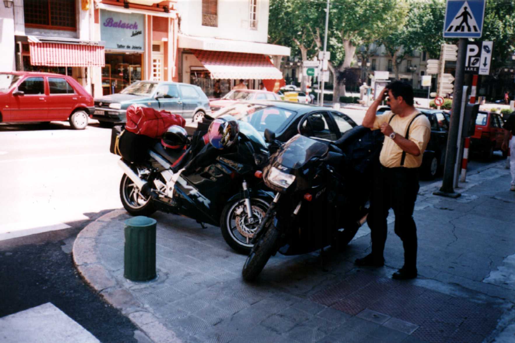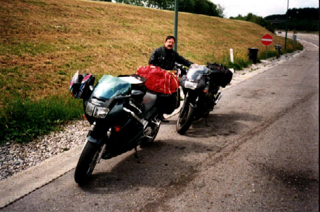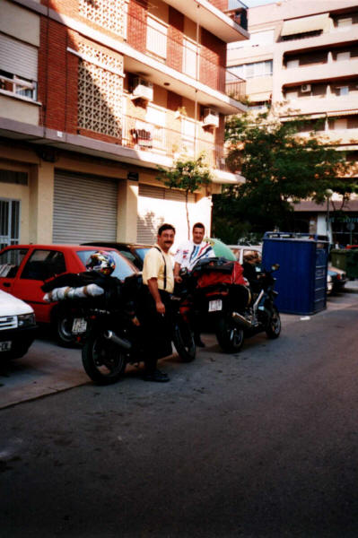 Pero eso sí, teníamos mucha ilusión..., que digo mucha..., toda...!!! ¿las motos? Una VFR 750 de Manolo y una Kawa GPZ 500 de un servidor.