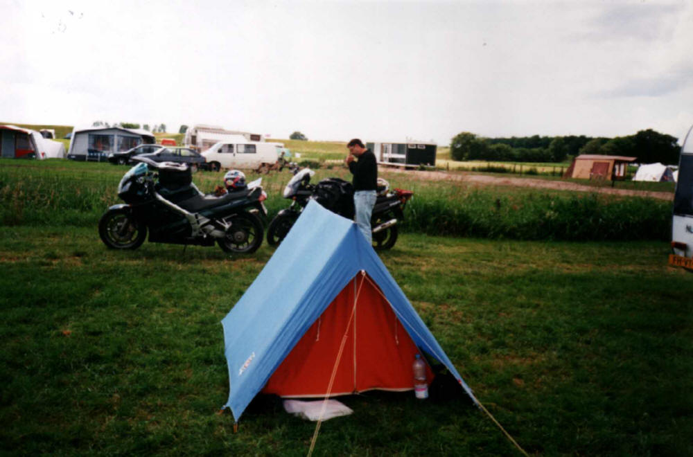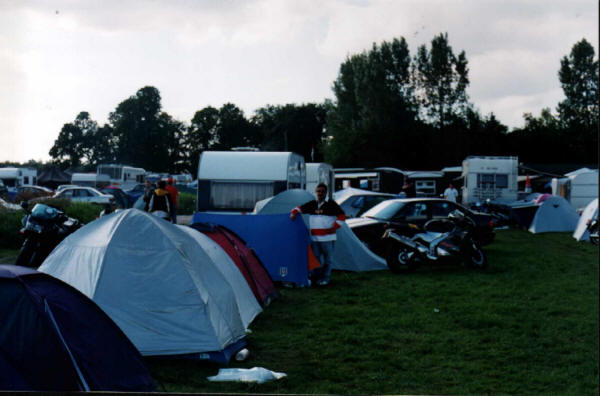 Y llegamos a Assen, buscamos el circuito y el lugar para acampar, grandes prados donde hasta no mucho pastaban las vacas y apenas acondicionados para plantar tiendas de campaña..., fuimos de los primeros en llegar.
