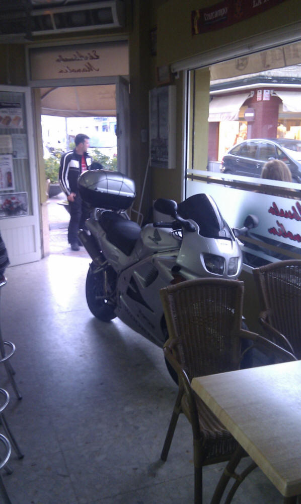 Un compañero cumpliendo con su ritual anual de meter la moto en "El Margarita".