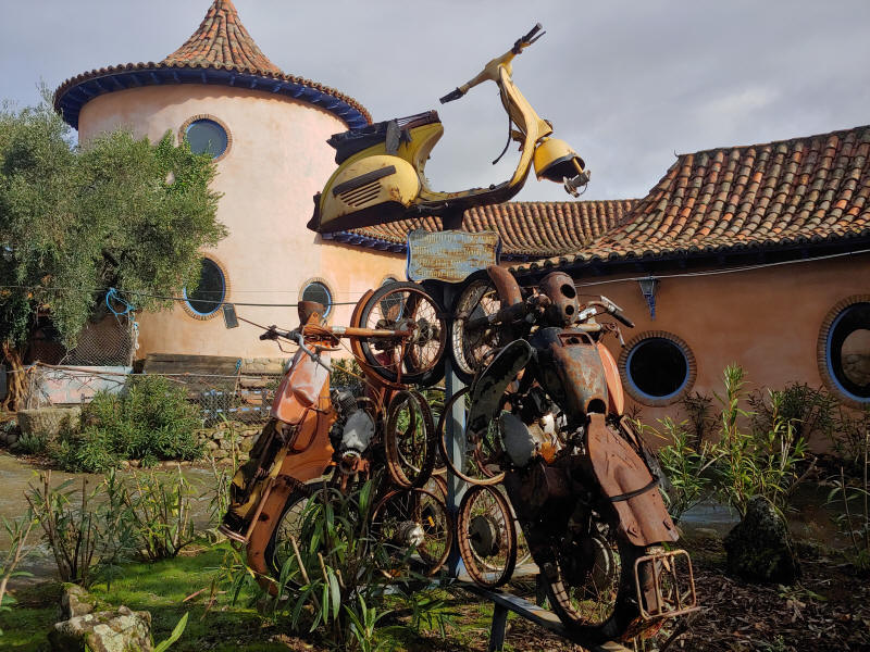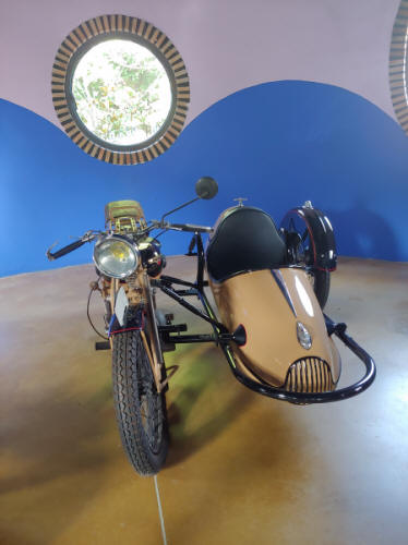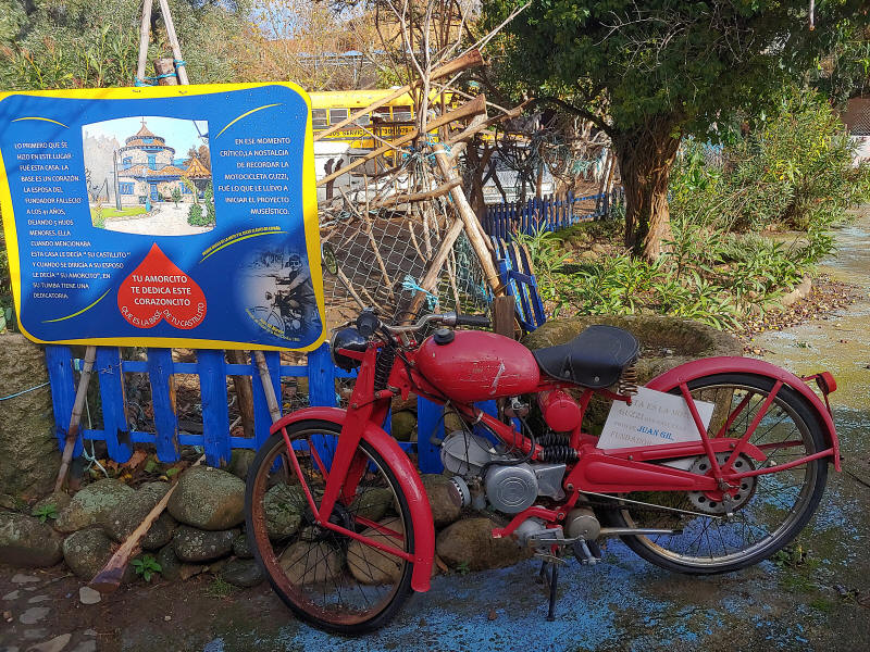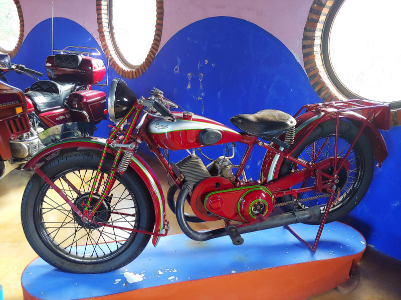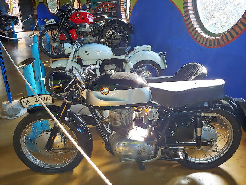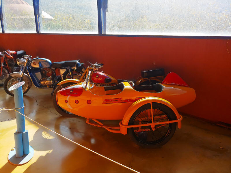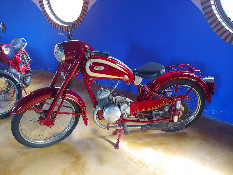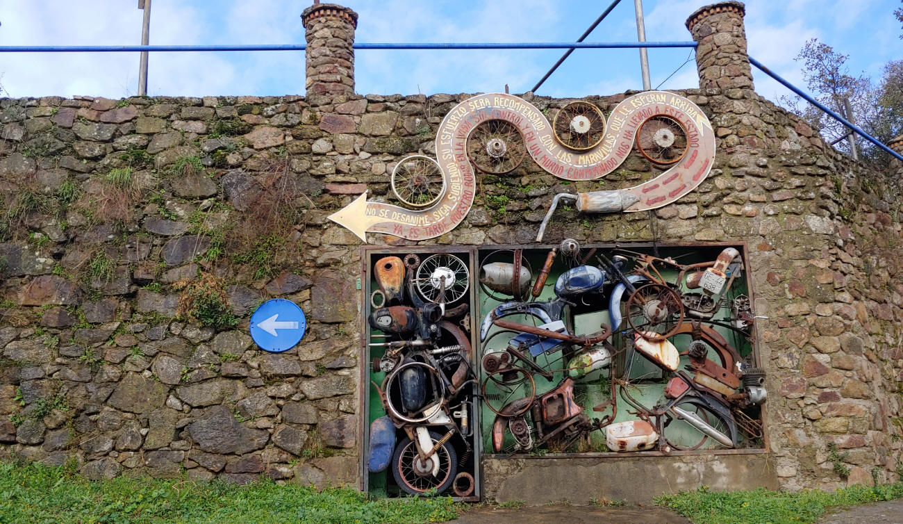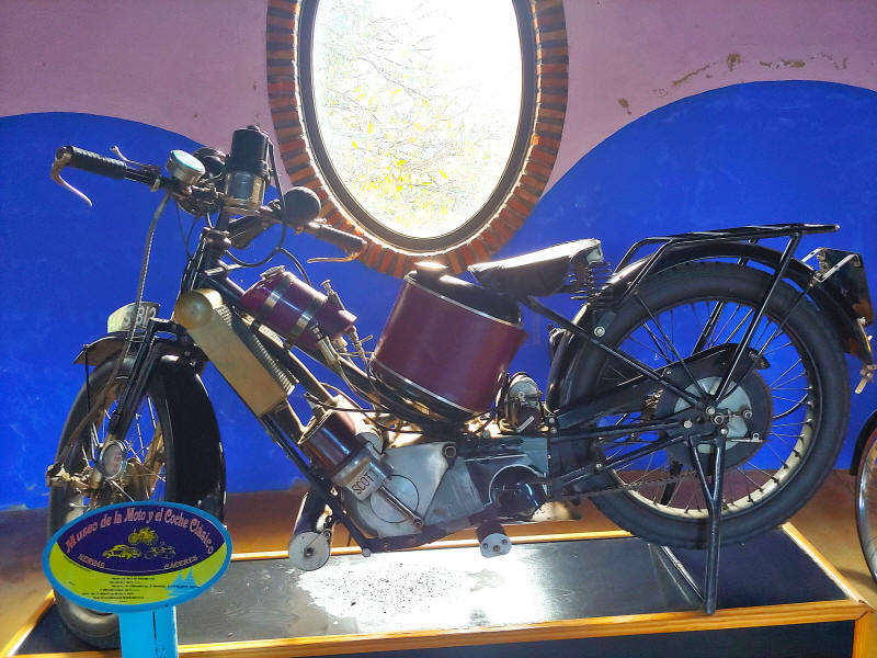 Es mediodía, el sol parece cada vez algo más estable, aunque las montañas siguen cubiertas de niebla, subo al puente medieval y veo las indicaciones para acceder al museo de la moto y el coche clásicos a 200 m..., "la oportunidad la pintan calva", que mejor momento que este para acercarme y visitar un museo de motos...