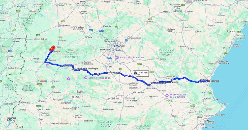 El viaje de ida se iba desarrollando a la perfección, largas y aburridas rectas de buen firme en la provincia de Cuenca pero con poquísimo trafico, la temperatura matinal fresca sobre todo al paso por Requena como es habitual...