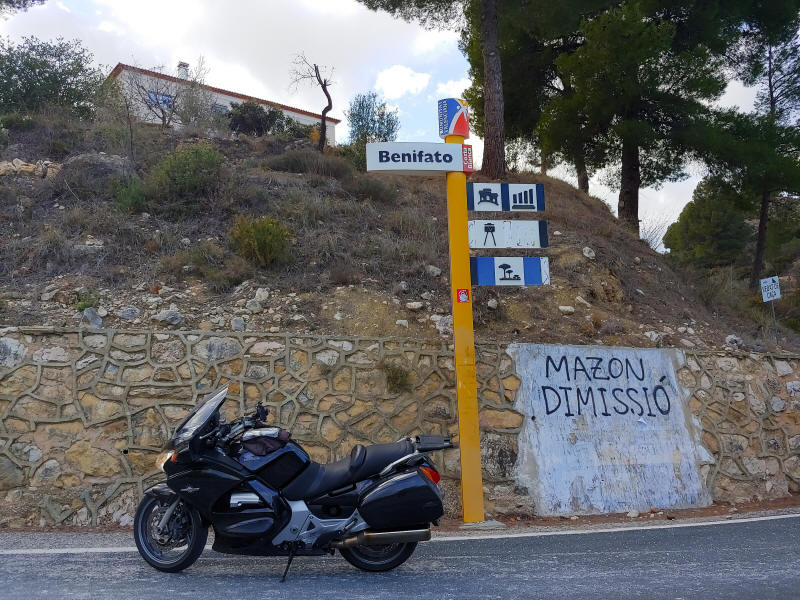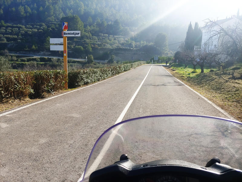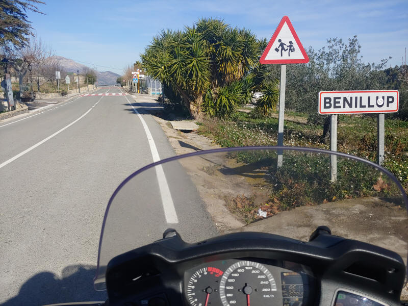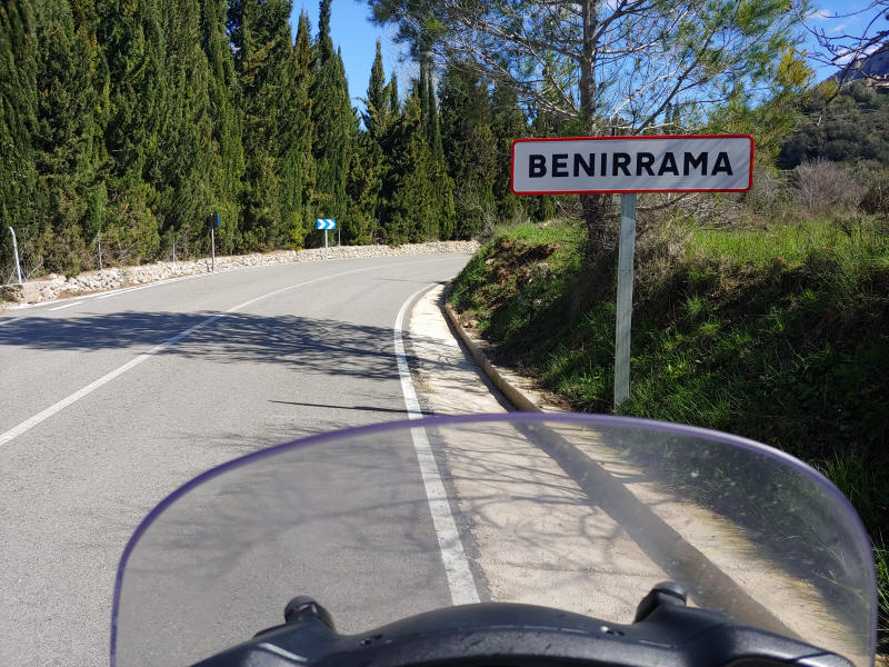Hay unos tramos de carretera muy buena para la moto por la provincia de Alicante (norte), La Vall de Gallinera y la Vall d'Ebo concretamente, donde muchas poblaciones comienzan su nombre con Beni...