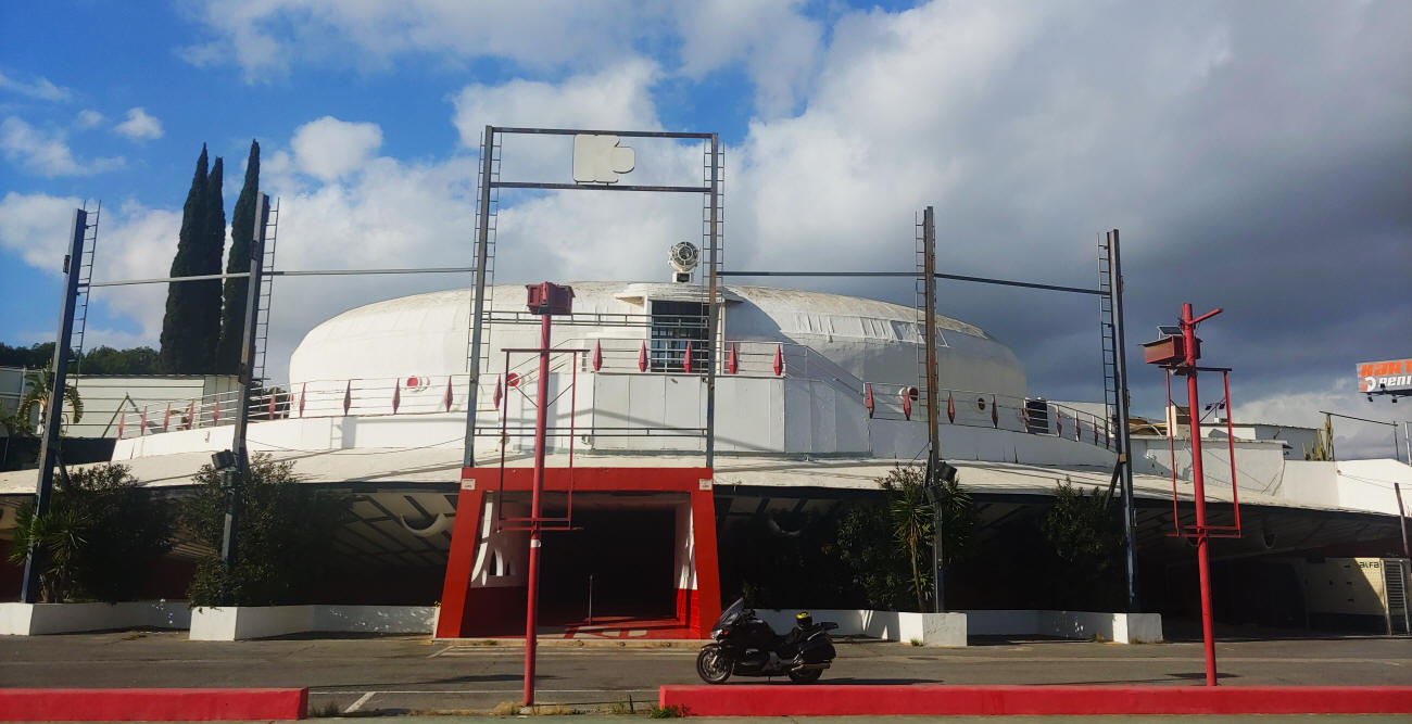 Benidorm, localidad turística por excelencia, ¿Y esta foto? no, no es por la moto, que también. La antigua CAP 3000, mítica discoteca de los 70's, figura ser un platillo volante.