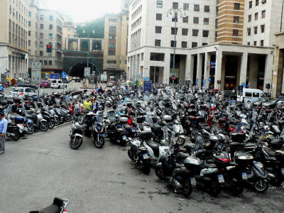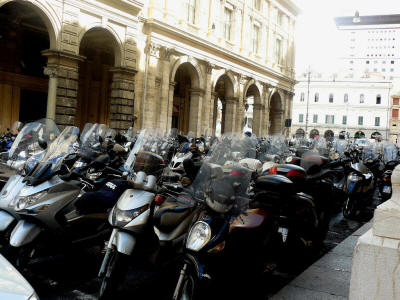 Los scooters dominan el tráfico en Genova...