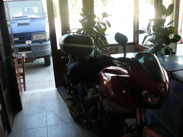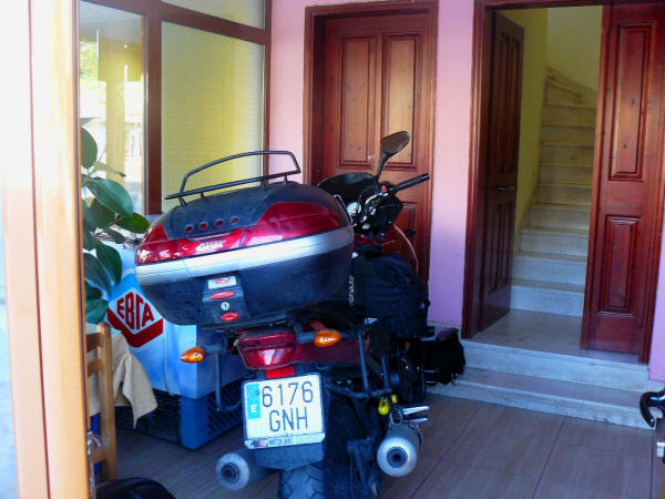Cosas del extranjero, la moto en el interior de la recepción del hotel…